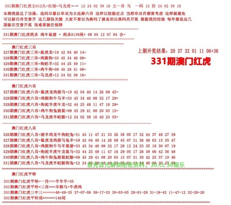 | 331期:三头必中【2-3-4】开:龙26准 |